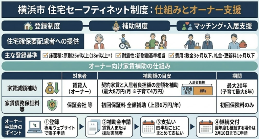 セーフティネット住宅(家賃補助)のしくみ(オーナー手続き中心)