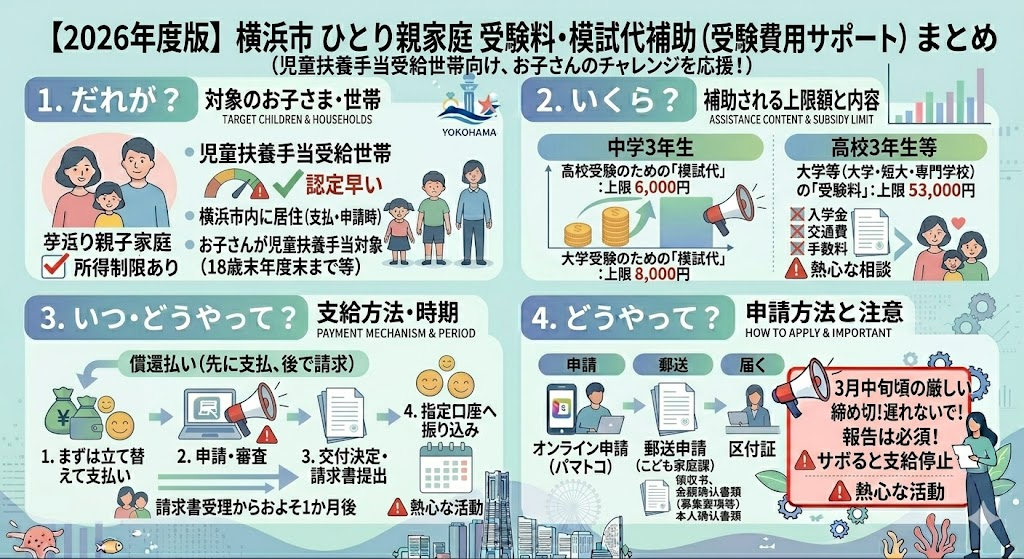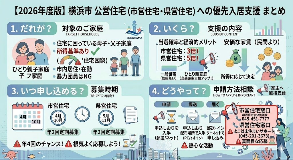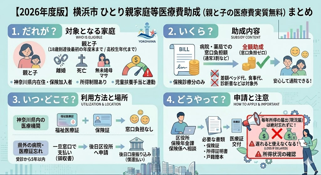 横浜市のシングルマザー必見!2026年度最新・ひとり親向け支援制度まとめ(手当・割引・家賃補助)