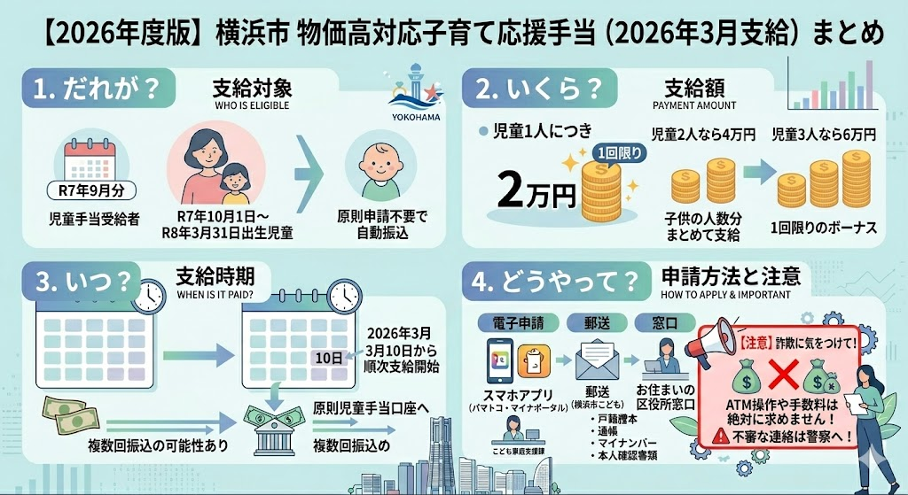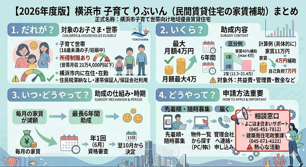 - 制度全般のお問い合わせ先: 横浜市こども青少年局 こども家庭課(045-671-2390)